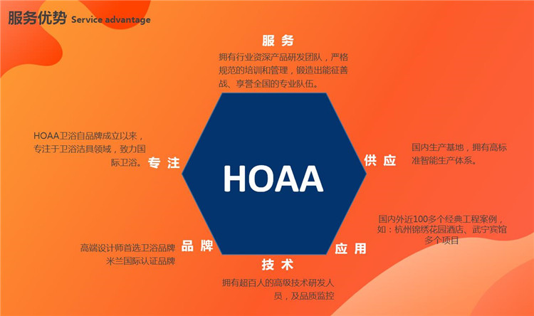 HOAA衛(wèi)浴品牌 ——源于全球著名的時尚之都米蘭,世界上最具影響力的時尚與設計之都,米蘭是世界歷史文化名城和世界時尚之都。用設計定義未來。HOAA始終以獨特設計、創(chuàng)新科技、一直以藝術(shù)詮釋生活,讓生活更美好的服務宗旨,追求藝術(shù)與生活的完美融合,致力打造與眾不同的衛(wèi)浴空間,為用戶帶來美好的生活體驗。